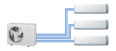 При монтаже кондиционера существует несколько вариантов по установке внутреннего и наружного блоков. В данной статье рассказывается о схемах монтажа мульти сплит-системы (кондиционера, состоящего из одного наружного и нескольких внутренних блоков).
