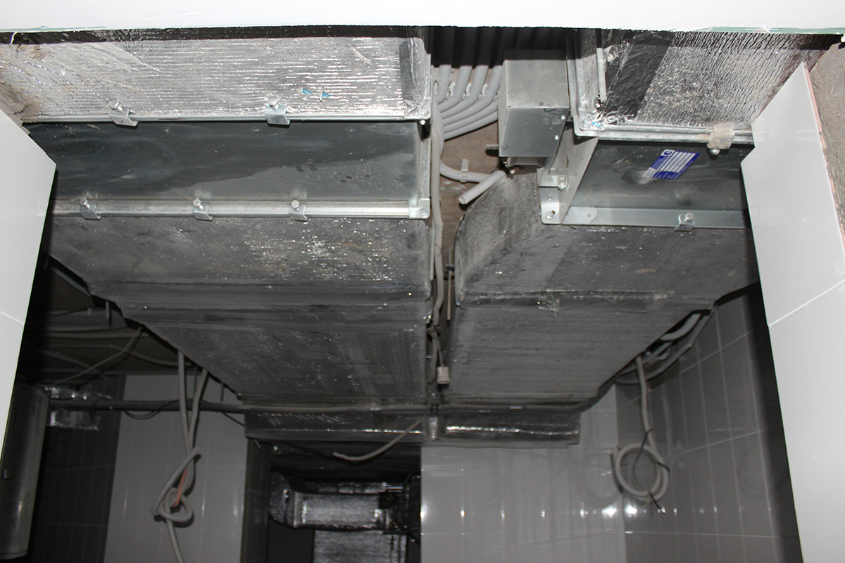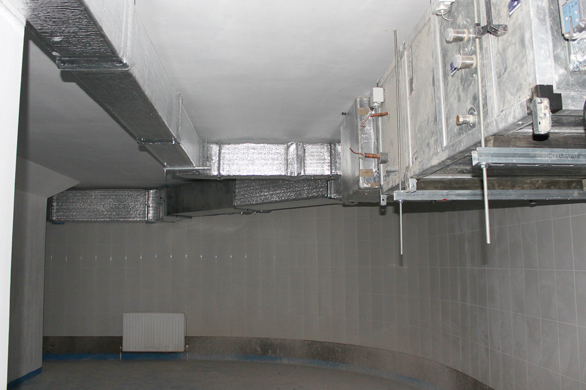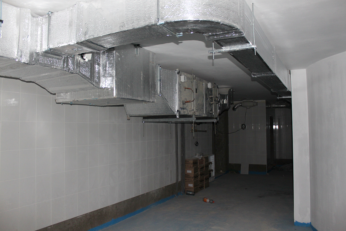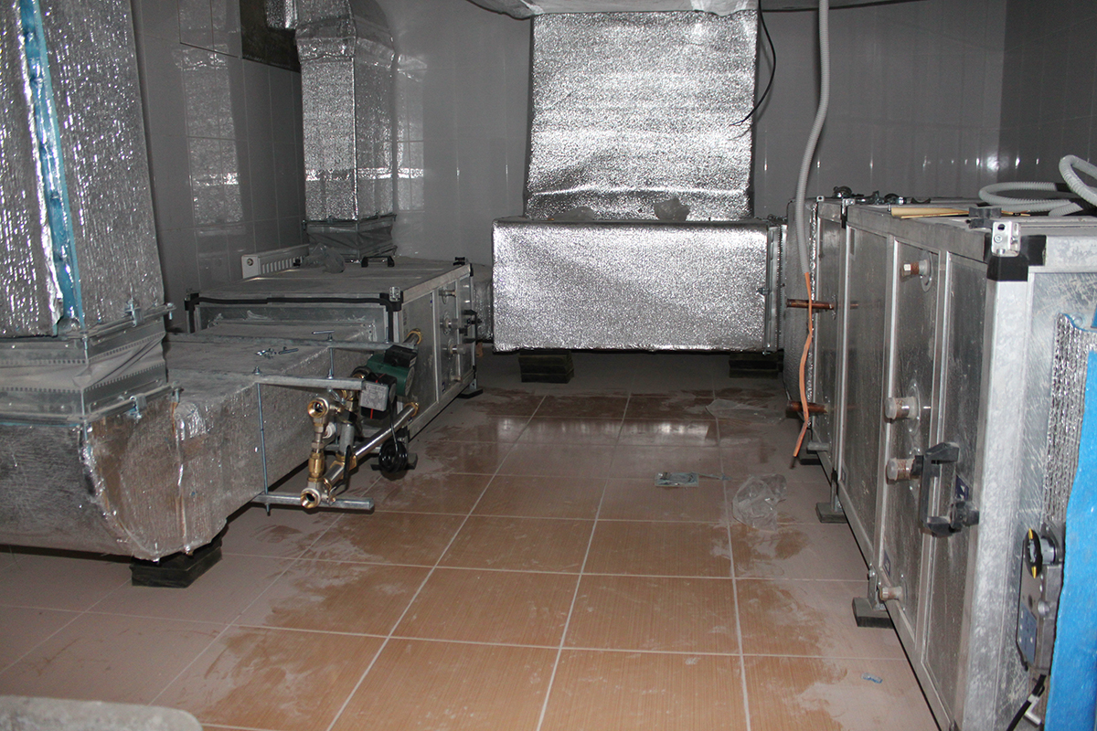 Данный крупный объект находится в Московской области по Калужскому шоссе. Для объекта была спроектирована канальная система кондиционирования с тремя наружными блоками Daikin VRV IV (четвертое поколение). Общая площадь объекта - 1800 м2. Было установлено 17 внутренних канальных блоков. Кроме того, была установлена приточная система с охлаждением Daikin ERQ. Приточно-вытяжная система бассейна - 2500 м2/ч (приток) и 2500 м2/ч (вытяжка). В бассейне также был установлен осушитель Dantherm. Для жилой площади использовалась приточная система, состоящая из двух блоков производительностью 5100 м2/ч. В санузлах была установлена вытяжная система.