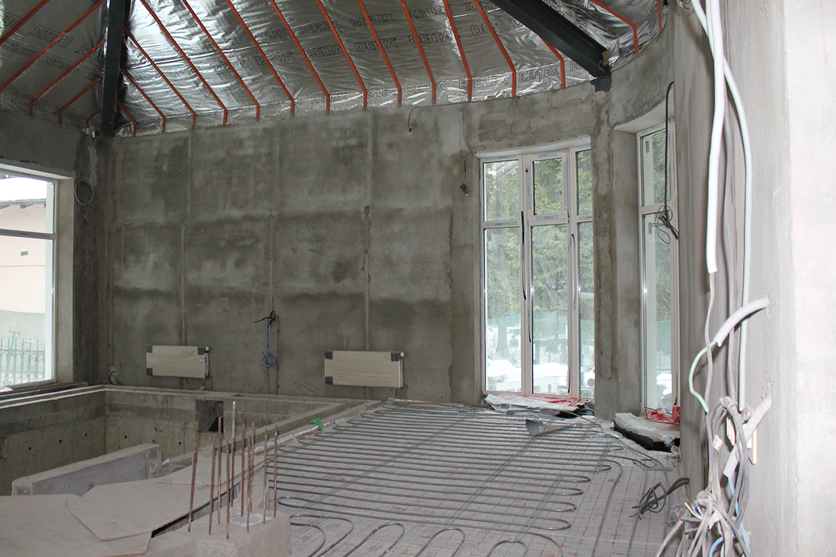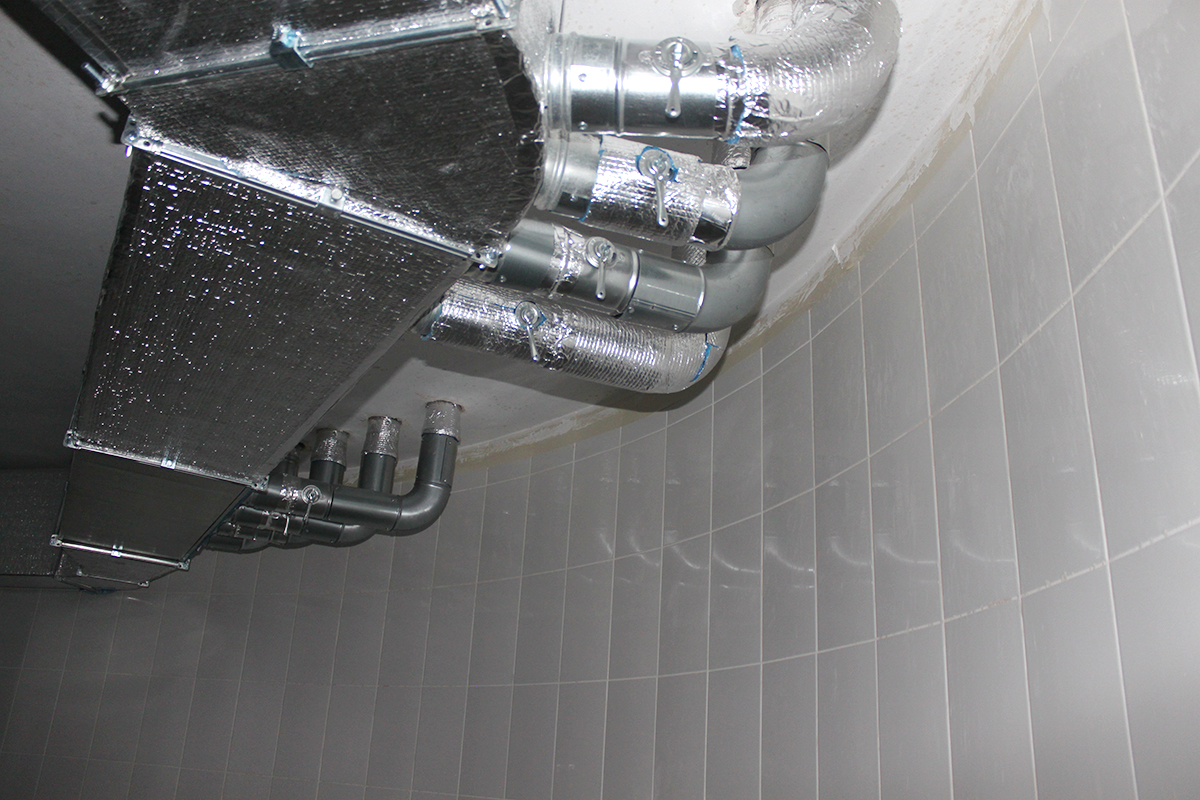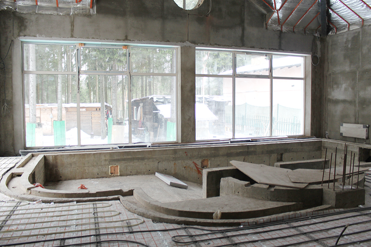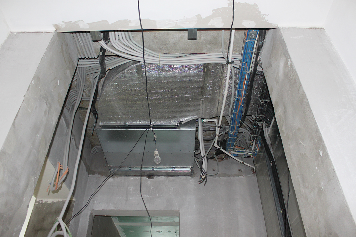 Данный крупный объект находится в Московской области по Калужскому шоссе. Для объекта была спроектирована канальная система кондиционирования с тремя наружными блоками Daikin VRV IV (четвертое поколение). Общая площадь объекта - 1800 м2. Было установлено 17 внутренних канальных блоков. Кроме того, была установлена приточная система с охлаждением Daikin ERQ. Приточно-вытяжная система бассейна - 2500 м2/ч (приток) и 2500 м2/ч (вытяжка). В бассейне также был установлен осушитель Dantherm. Для жилой площади использовалась приточная система, состоящая из двух блоков производительностью 5100 м2/ч. В санузлах была установлена вытяжная система.