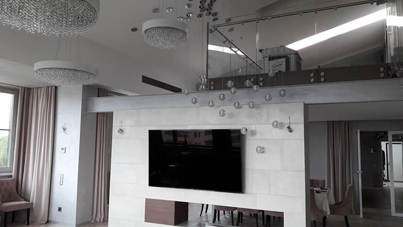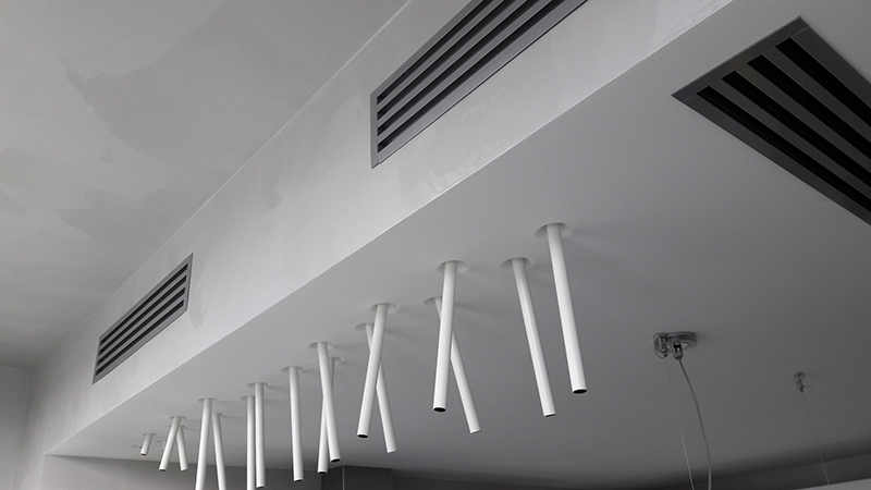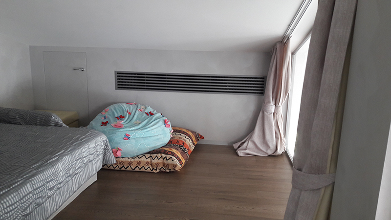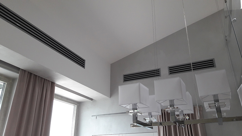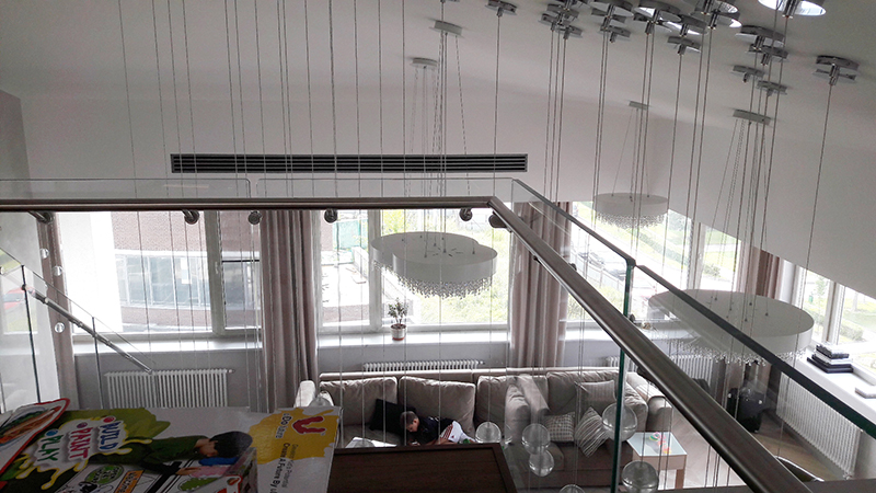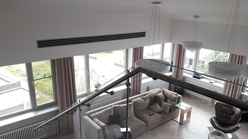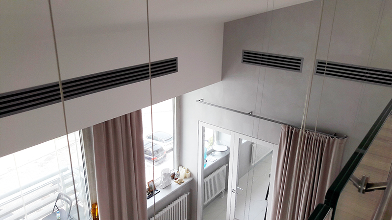 VRV система четвертого поколения Daikin RXYQ-T, а также 8 канальных блоков обеспечивают кондиционирование воздуха на первом этаже дома. Приток свежего воздуха с улицы, а также вытяжку воздуха из помещения осуществляет приточно-вытяжная установка Amalva.