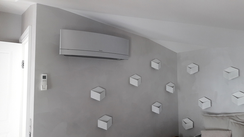 На данном объекте завершена чистовая отделка и монтаж мульти сплит-системы Daikin. Мульти сплит-система на 8 кВт охлаждает помещения второго этажа. К одному наружному блоку Daikin 4MXS80 подключены два настенных блока Daikin FTXS-K, а также два блока Daikin FTXG "Emura".