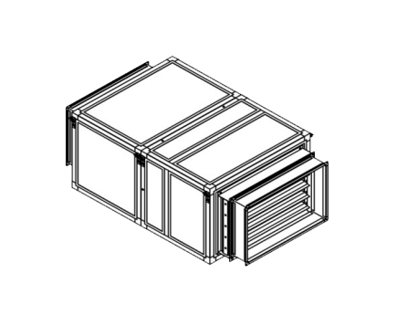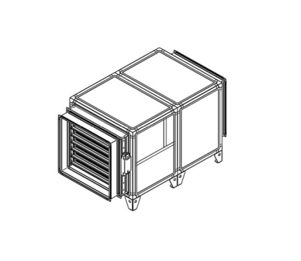Вытяжная установка в базовой комплектации состоит из шумо- и термоизолированного корпуса и вентилятора. Прибор может дополнительно комплектоваться воздушным фильтром класса G4 и воздушным клапаном с электроприводом (воздушный клапан может быть с возвратной пружиной, либо без нее).