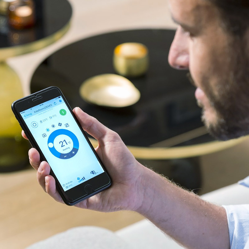 • В качестве дополнительной опции в кондиционерах FTXF есть возможность удалённого управления. Достаточно установить в пространство внутреннего блока специальный адаптер и скачать на свой смартфон мобильное приложение. Программное обеспечение контроллера позволяет управлять работой системы, отправлять на указанную электронную почту предупреждающие сообщения, управлять таймером и составлять график работы.