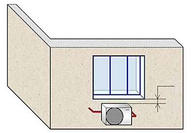 - Монтаж наружного блока под окно, не требующий работы альпиниста, либо с лестницы;